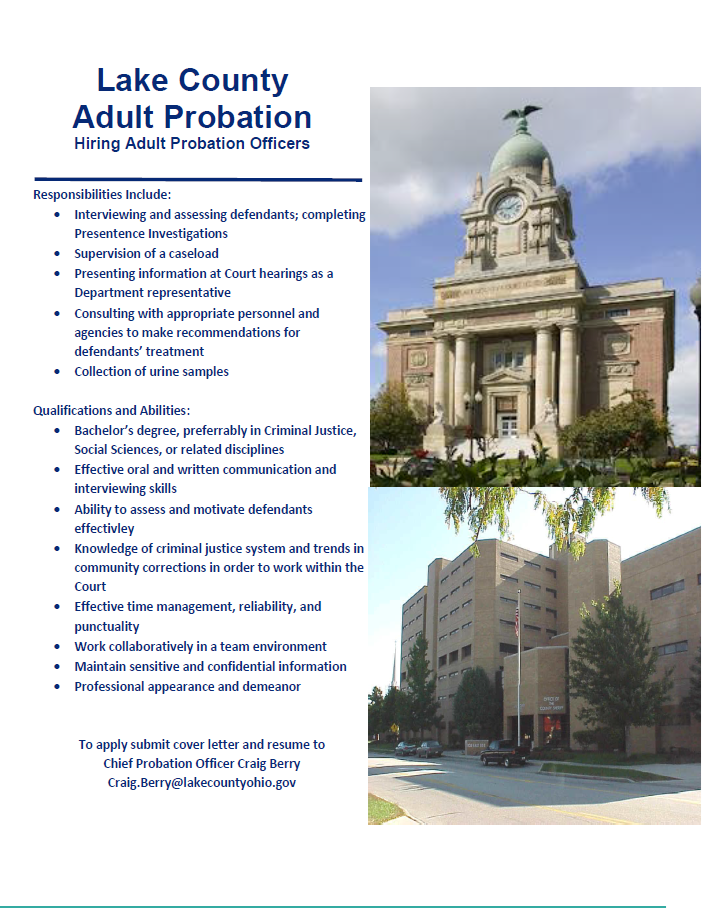 Please submit cover letters and resumes to Lake County Public Defender Vanessa Clapp via email at [email protected] or call the office at 440-350-3200 for more information.