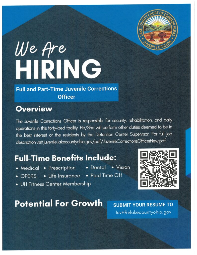 The Lake County Juvenile Court is seeking full and part-time Juvenile Court Corrections Officers. Please click here to view the full job description.